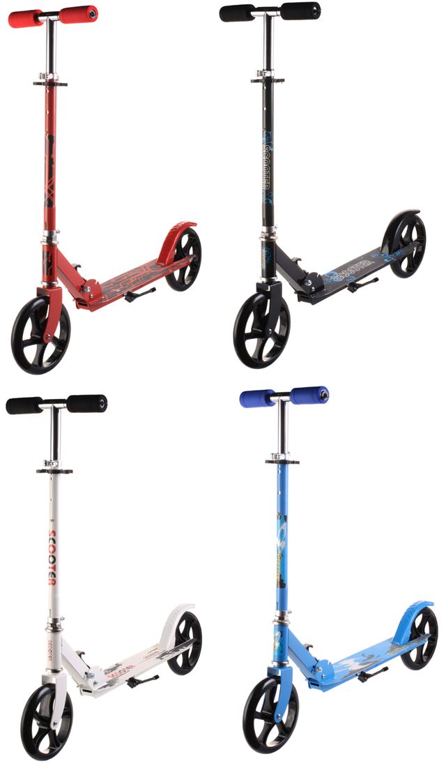 Цей двоколісний самокат віком від 6 років, и з максимальним навантаженням до 90 кг, універсальний транспортний засіб для пересування містом. Великі поліуретанові колеса 200 мм і підшипники ABEC-7 забезпечать швидкісне катання і без проблем зможете кататися брусчатками та дрібними нерівностями, нададуть більший накат і не пратимуться. Сьогодні їзда на самокаті приваблює все більше й більше людей. Рама моделі виготовлена з легкого сплаву алюмінію. Кермо T-подібне, надійно кріпиться до рами самоката, регулюється за висотою від 90 до 115 см.